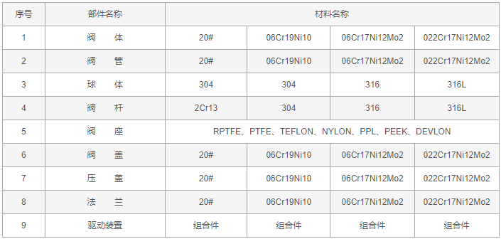 全焊接法蘭球閥零件材料: