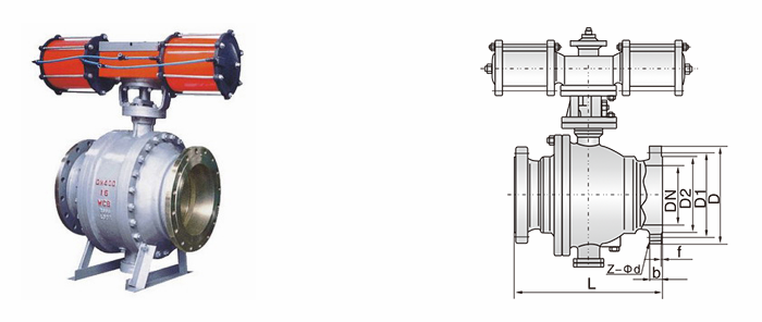 氣動噴煤粉球閥外形結構圖: