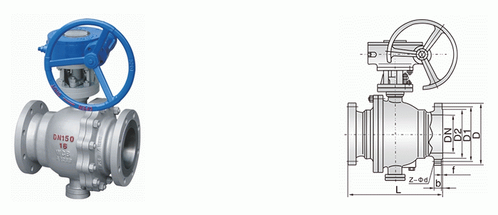 蝸輪硬密封固定式球閥外形結(jié)構(gòu)圖:
