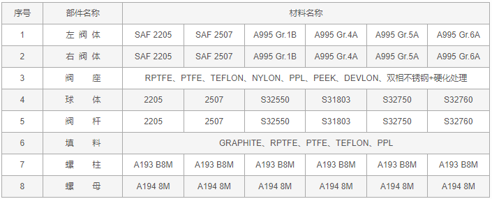 雙相鋼球閥零件材料: