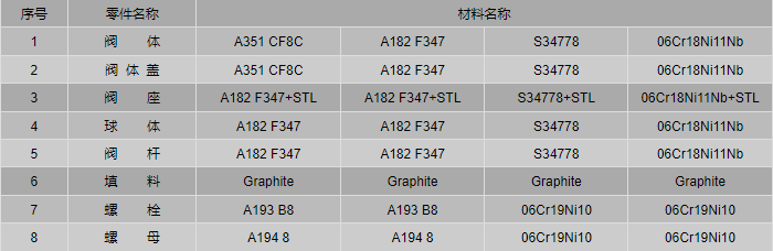 CF8C、F347不銹鋼球閥貨參數(shù):