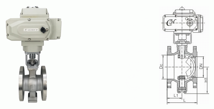 電動(dòng)V型球閥外形結(jié)構(gòu)圖: