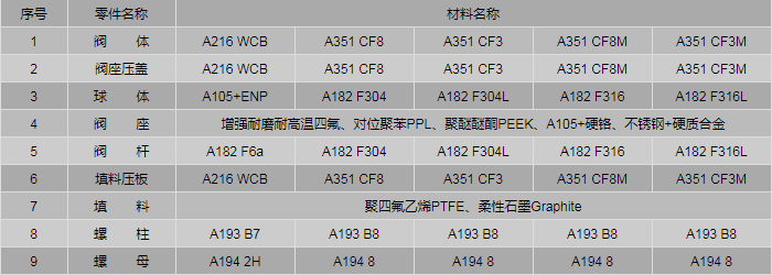 一體式美標(biāo)球閥零件材料: