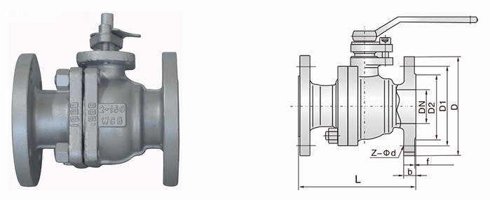 手動美標(biāo)球閥外形結(jié)構(gòu)圖: