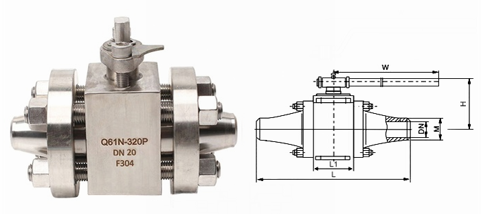 高壓焊接球閥外形結(jié)構(gòu)圖: