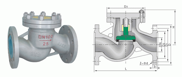 法蘭氨用止回閥閥瓣利用流體壓差和自身的重量實(shí)現(xiàn)升降,適用于大部分的罐區(qū)水平管路上,自動(dòng)阻止介質(zhì)逆流,保護(hù)上游設(shè)備。安裝方式:法蘭氨用止回閥在管路上,只能水平安裝。法蘭氨用止回閥技術(shù)參數(shù):