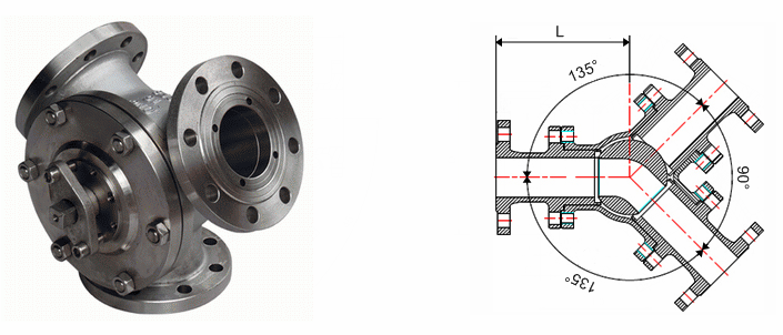 不銹鋼Y型三通球閥流道形式為Y形,有成120度和135度角兩種結構型式,其主體可根據(jù)不同的工況需求采用不銹鋼CF8、CF3、CF8M、CF3M、316Ti及310S等材料鑄造而成,其中CF3M適用于尿素及甲胺液等腐蝕性物料,而310S材質則主要安裝在Y型管路輸送系統(tǒng)中,用于800℃以下高溫介質流向的切換。