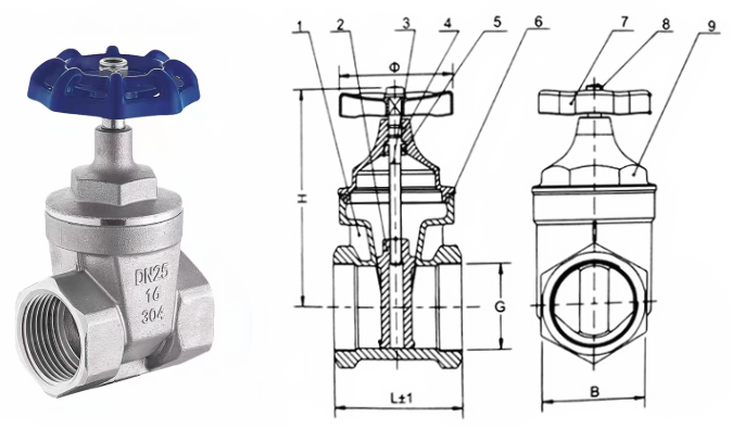 不銹鋼軟密封絲口閘閥外形結(jié)構(gòu)圖: