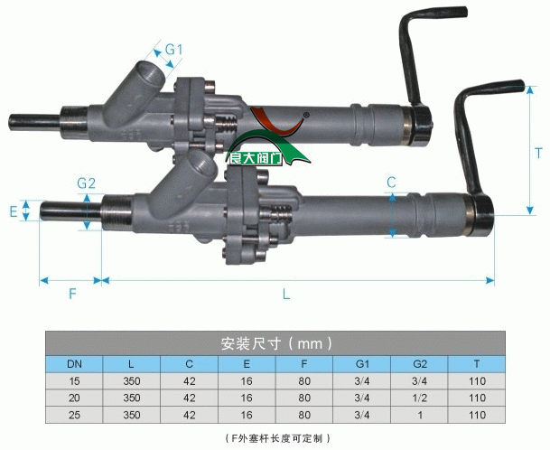 柱塞式取樣閥安裝尺寸表: