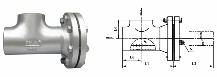 側(cè)流式T型過濾器外形結(jié)構(gòu)圖: