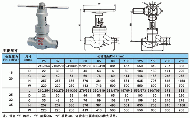 平衡式焊接截止閥結(jié)構(gòu)尺寸: