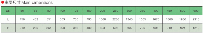 一體式倒流防止器外形尺寸表: