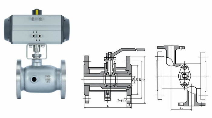 不銹鋼氣動保溫球閥外形結(jié)構(gòu)圖: