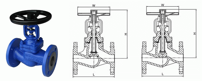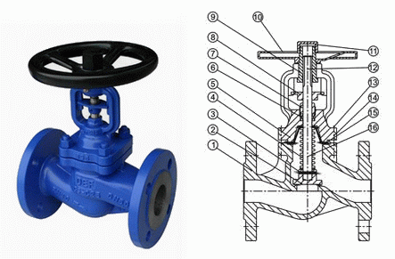 德標(biāo)波紋管截止閥外形結(jié)構(gòu):