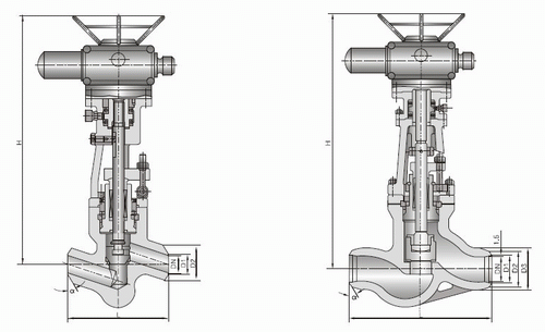J961Y高溫高壓電動截止閥外形結(jié)構(gòu)圖: