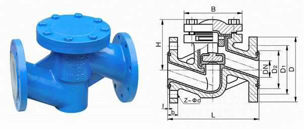 襯氟止回閥外形結(jié)構(gòu)圖: