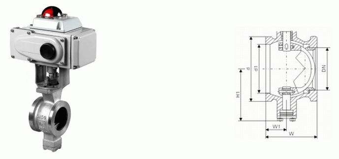 對夾式電動(dòng)V型球閥外形結(jié)構(gòu)圖: