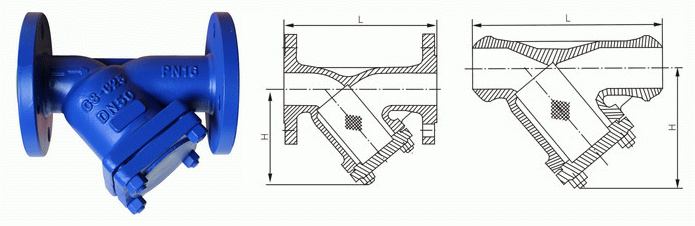德標(biāo)Y型法蘭過(guò)濾器外形結(jié)構(gòu)圖:
