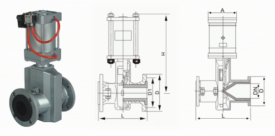 耐磨氣動管夾閥外形結(jié)構(gòu)圖: