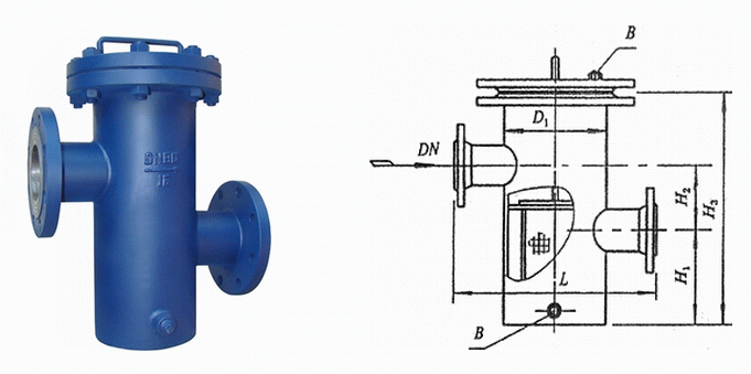 高低籃式過濾器外形結(jié)構(gòu)圖: