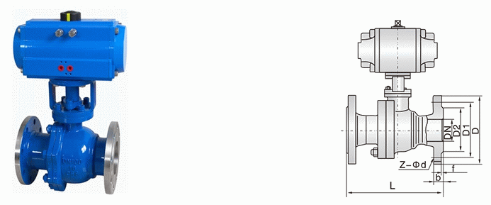 氣動法蘭球閥外形結(jié)構(gòu)圖: