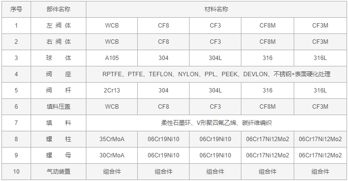 氣動法蘭球閥零件材料: